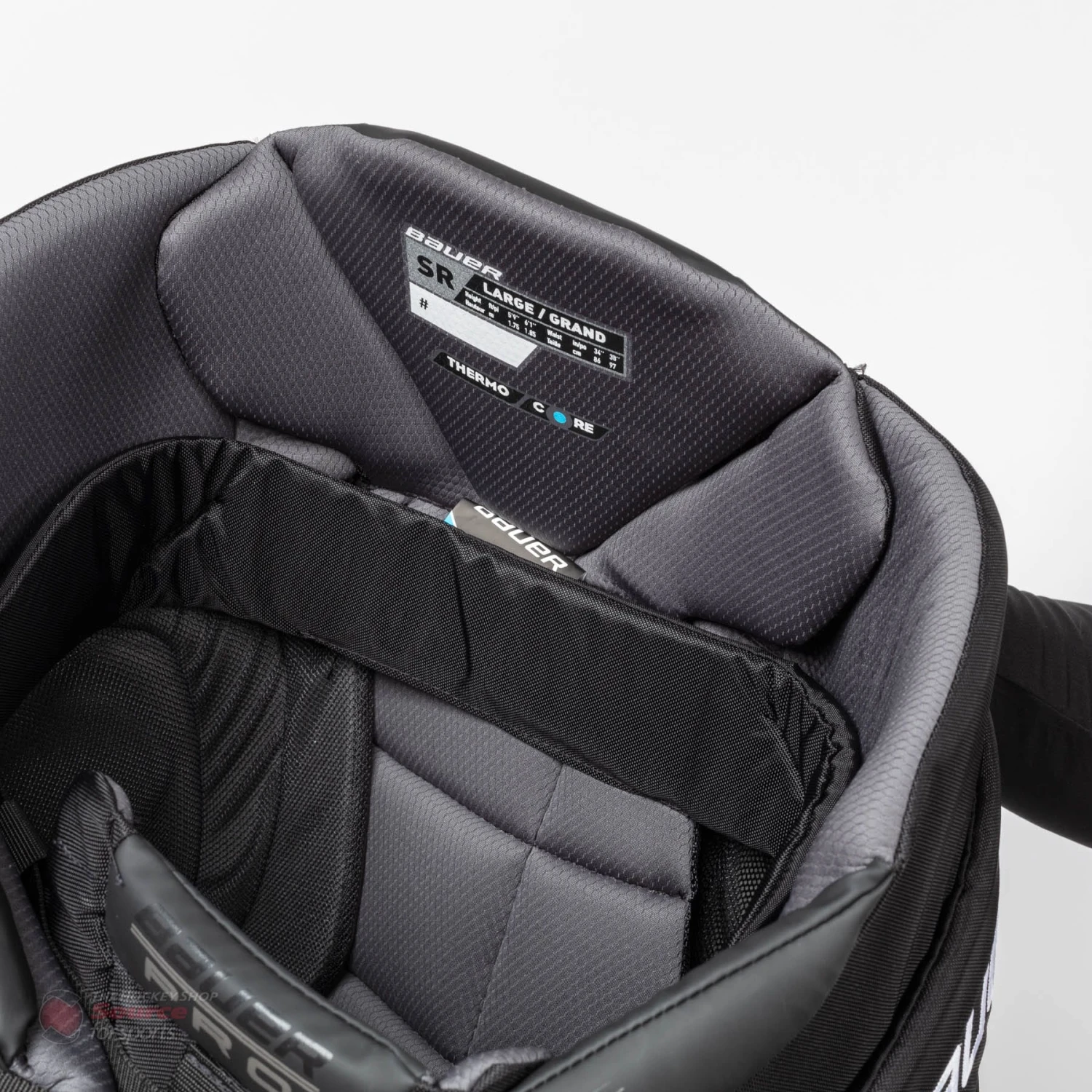 The hips of the Bauer Pro Pant are constructed with Comfort Edge Anatomical protection and Internal PORON. This provides elite protection and a snugger fit in the hips. There is also a hip flex pad that has Curv composite and Shock Lite protection giving you an extra layer of protection.