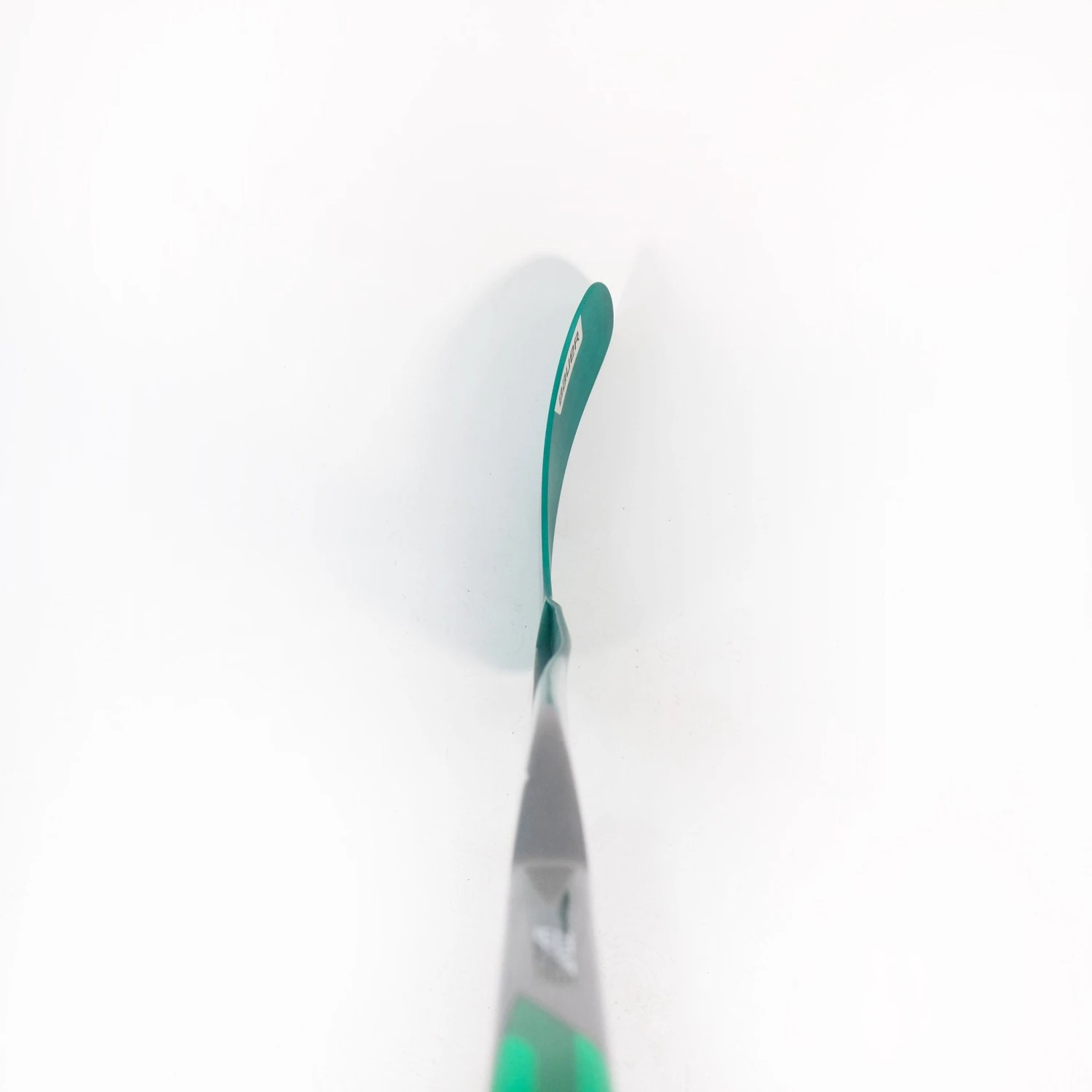 This custom Bauer Supreme 3S Pro goal stick is a pro return from AHL goalie Mat Robson. It has been outfitted with a Supreme Ultrasonic graphic over a Supreme 2S Pro construction. Pro stock goalie sticks possess curves for the goalie they were designed for; the Robson curve is similar to a Bauer P29 (player) curve with a round toe.