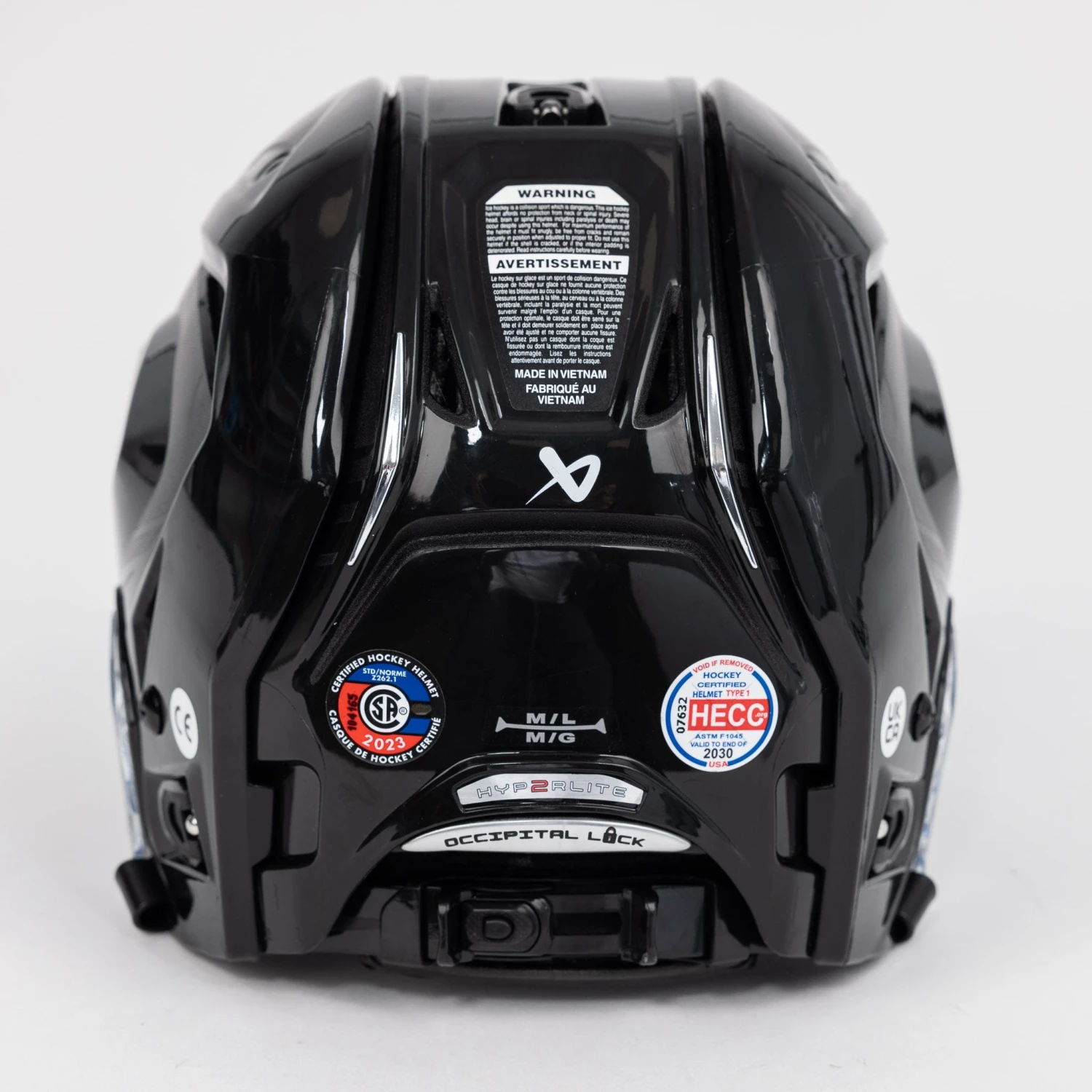 The Hyperlite 2 helmet is certified with HECC (Hockey Equipment Certification Council), CSA (Canadian Standards Association), UKCA (United Kingdom Conformity Assesed) and CE (European Community) certification. These stickers indicate their compliance with the applicable standards in different leagues.