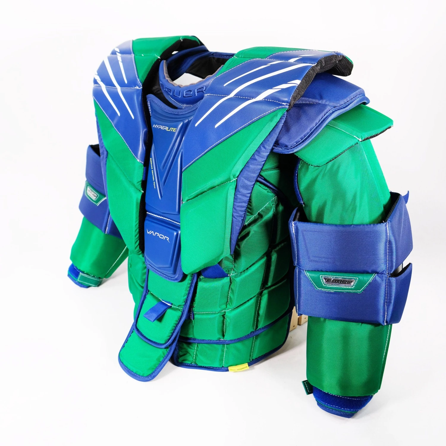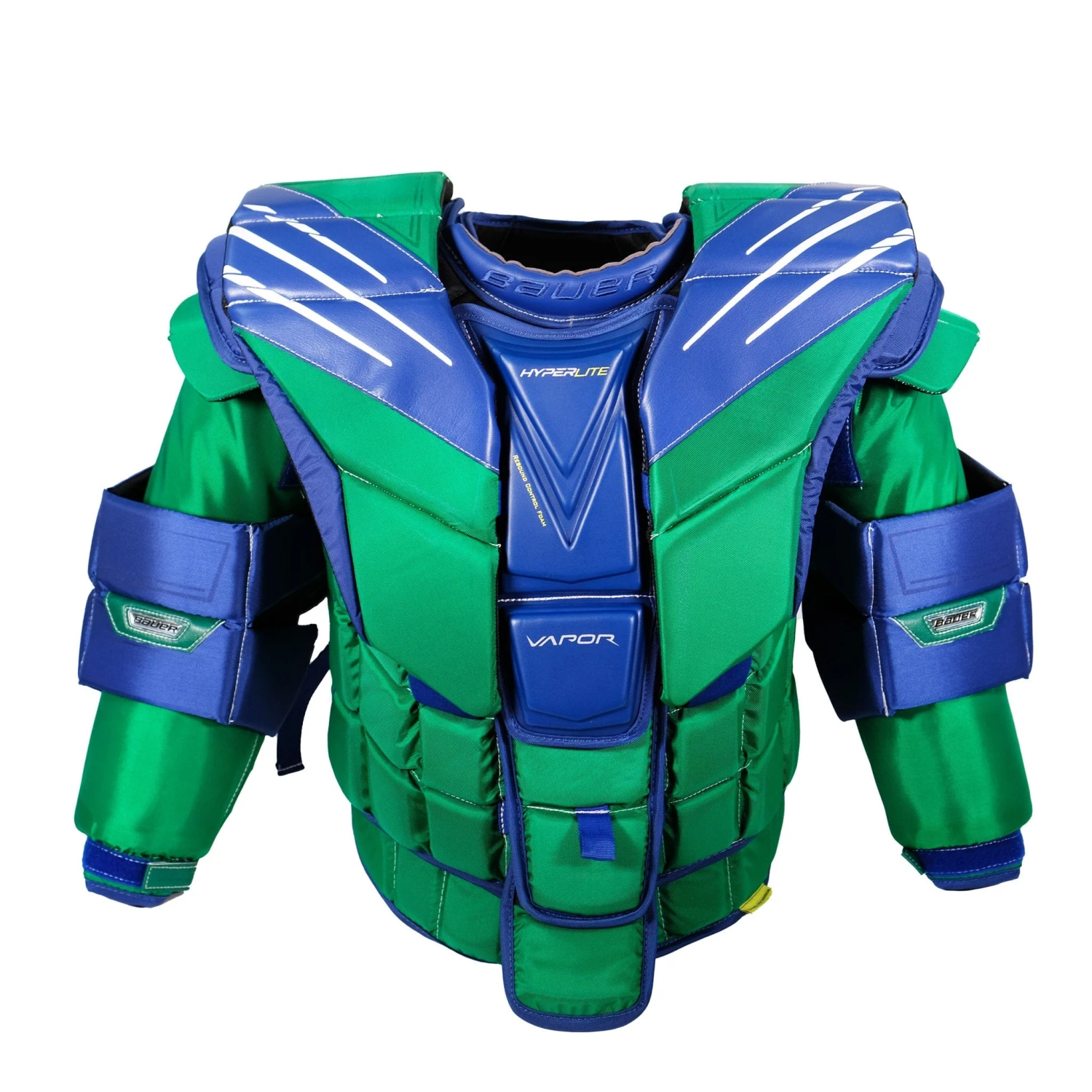 New for 2021 is the Bauer Vapor HyperLite Senior Chest & Arm Protector. Bauer wanted to keep the mobility, range of motion and lightweight construction users of the 2X Pro liked while adding more protection to key areas and creating a more beefed-up unit overall.