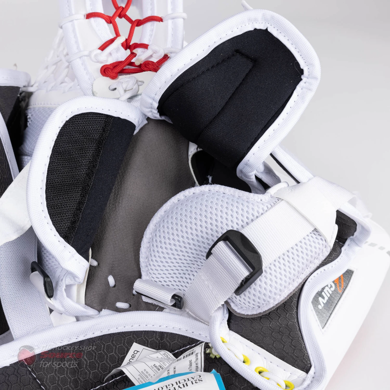 Bauer continues to use their Catchgrip material throughout the internals of the glove. The Hyperlite also has a few tweaks when it comes to strapping and adjustments on the backhand of the glove. A velcro adjustable neoprene-like flap extends from the finger stalls back over the knuckle allowing goalies to get a tighter fit in this region that doesn’t sacrifice the closure due to the elasticity of the material.