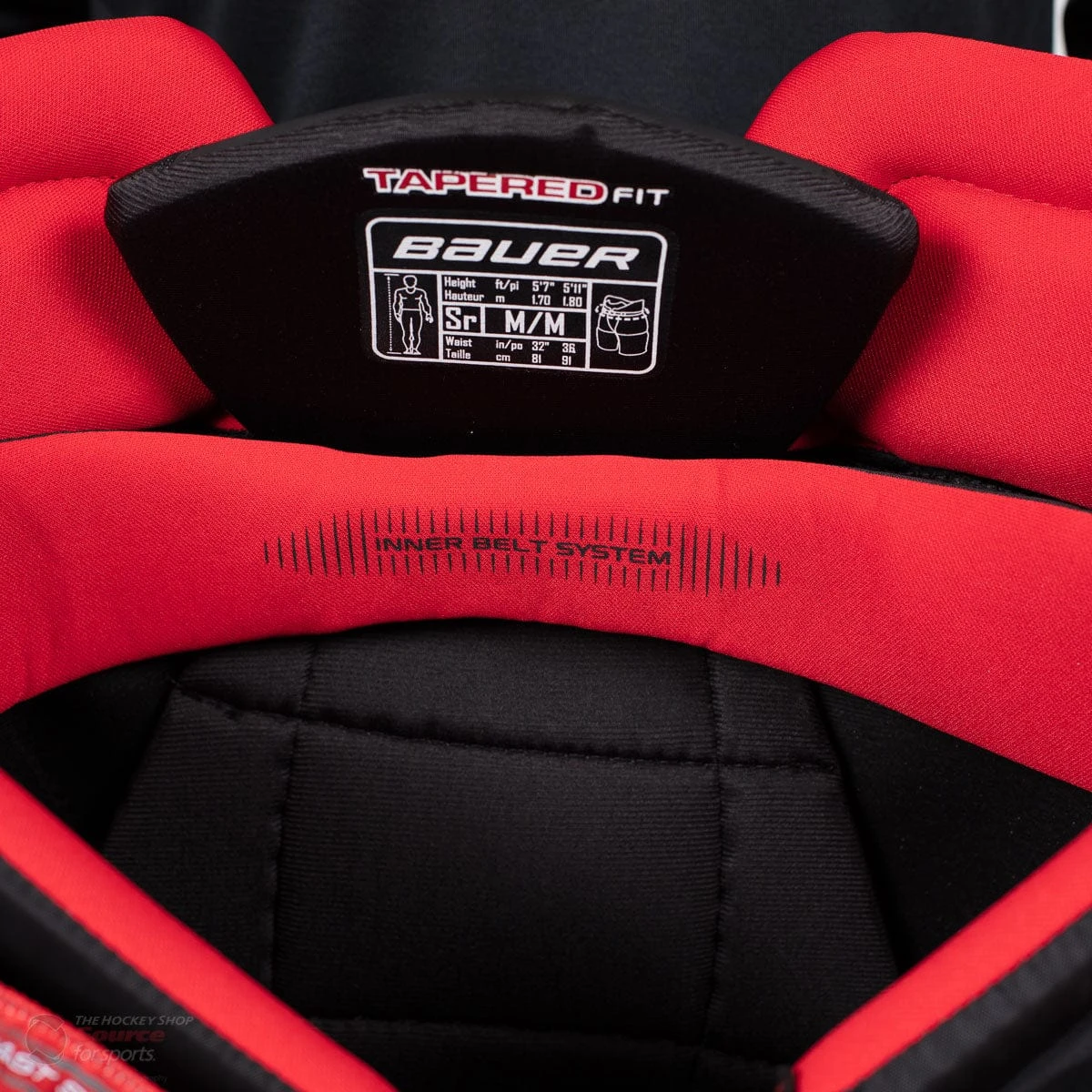 Designed to be more of a tapered fit, the Bauer X2.9 pants are a similar shape and fit to the original Bauer Vapor X900 goal pants. The fit in the pants aims to be very loose in the leg to prevent any sort of interference, the X2.9 pants then begin to taper in before becoming wide at the top again providing the option to tuck your chest protector.