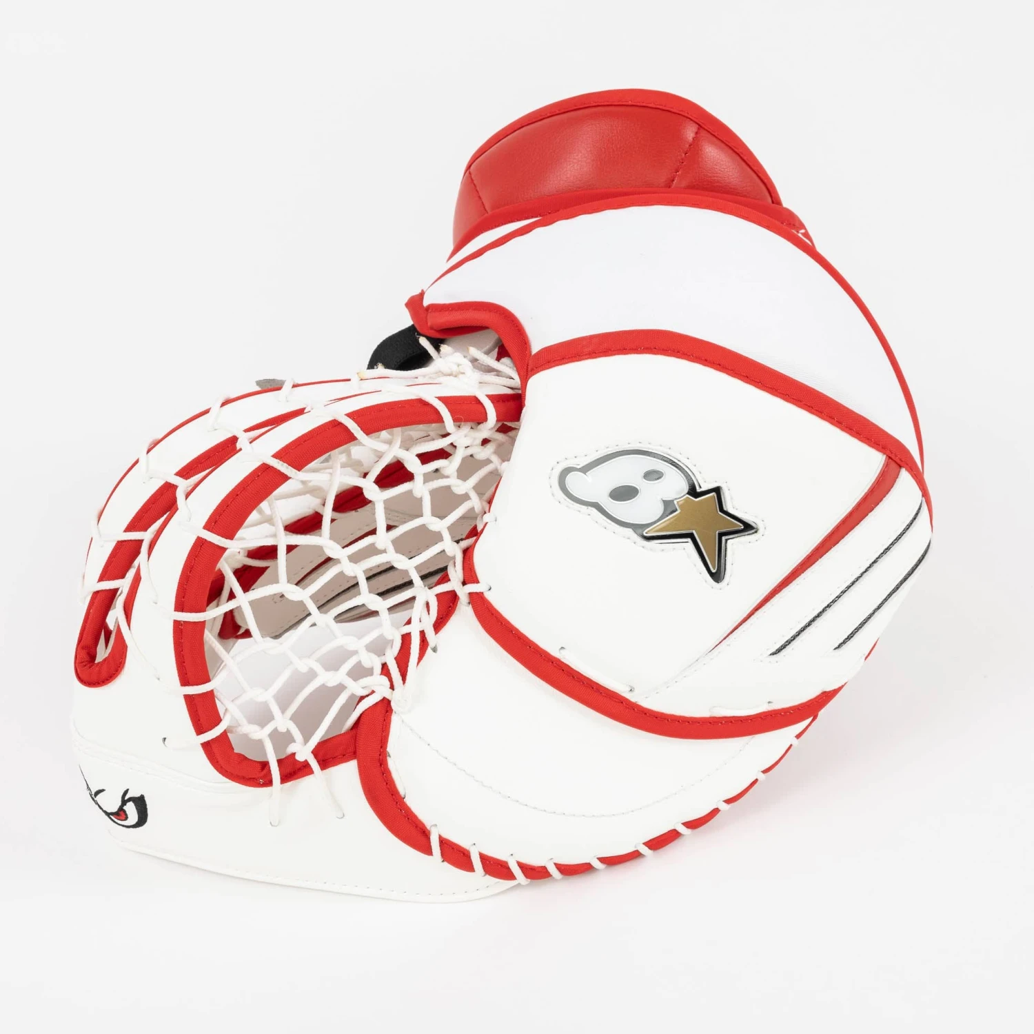 The Brian’s G-NETik X5 Intermediate Goalie Catcher comes in Regular and Full Right configurations, and the following colourways: White, White/Black, White/Black/Red, White/Blue, and White/Red.