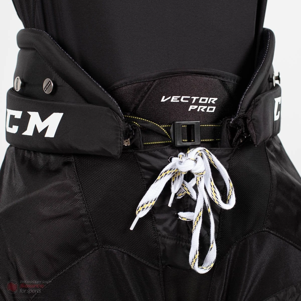 The CCM Tacks Vector Pro SR Hockey Pants are available in sizes Small through Extra Large, and come in the colour Black.