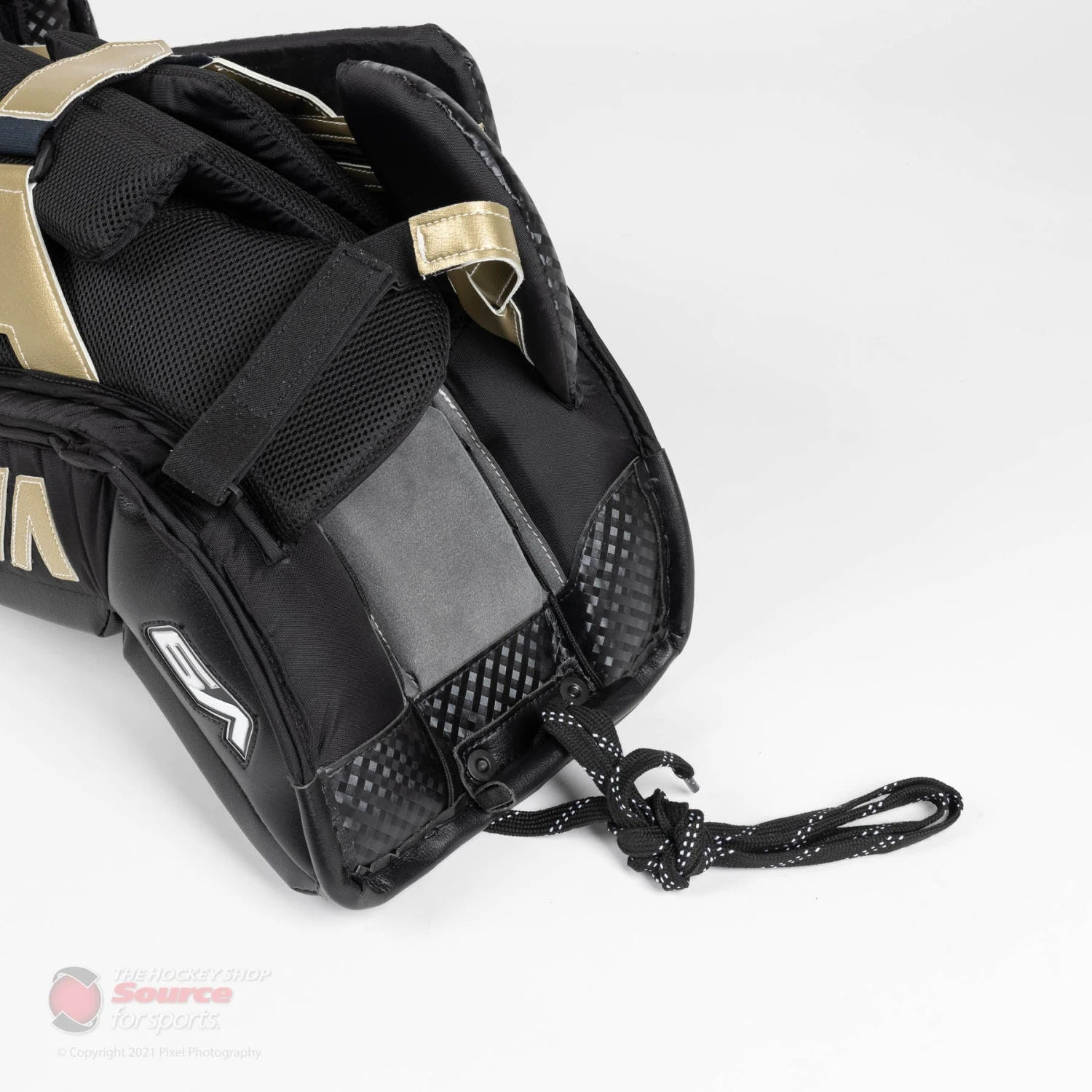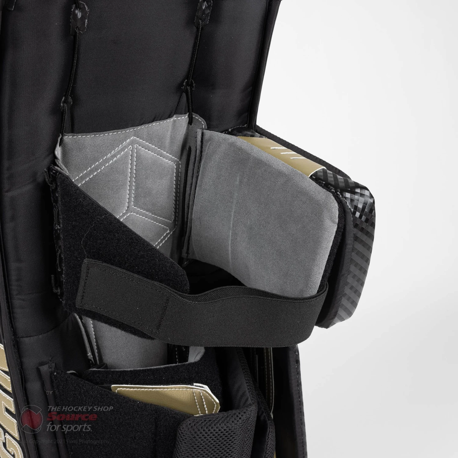 While still a fairly tight fitting leg channel, the V9 Pro Carbon has a widened inner leg cradle overall when compared to previous Velocity pads giving goals the feel of a tight fitting leg channel while offering the better rotation associated with a looser leg channel. Finally, the V9 Pro Carbon features a velcro bootstrap as well as the same bungee toe tie system seen on the SLR2 leg pads.