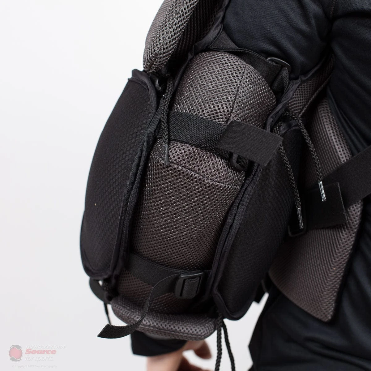 Using molded plastic elbow cups, Vaughn’s SLR2 chesty gives a comfortable feel while still allowing you to move freely. The arm floaters feature protection from all sides, eliminating gaps and using molded plastic to offer maximum protection.