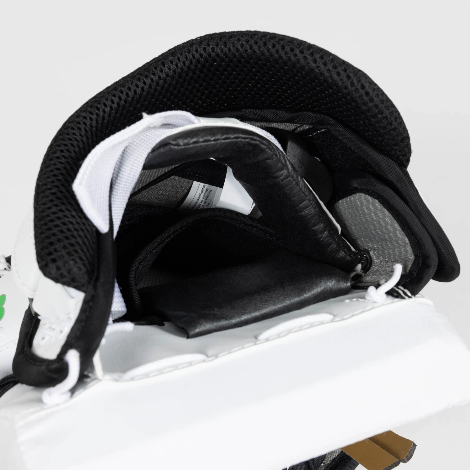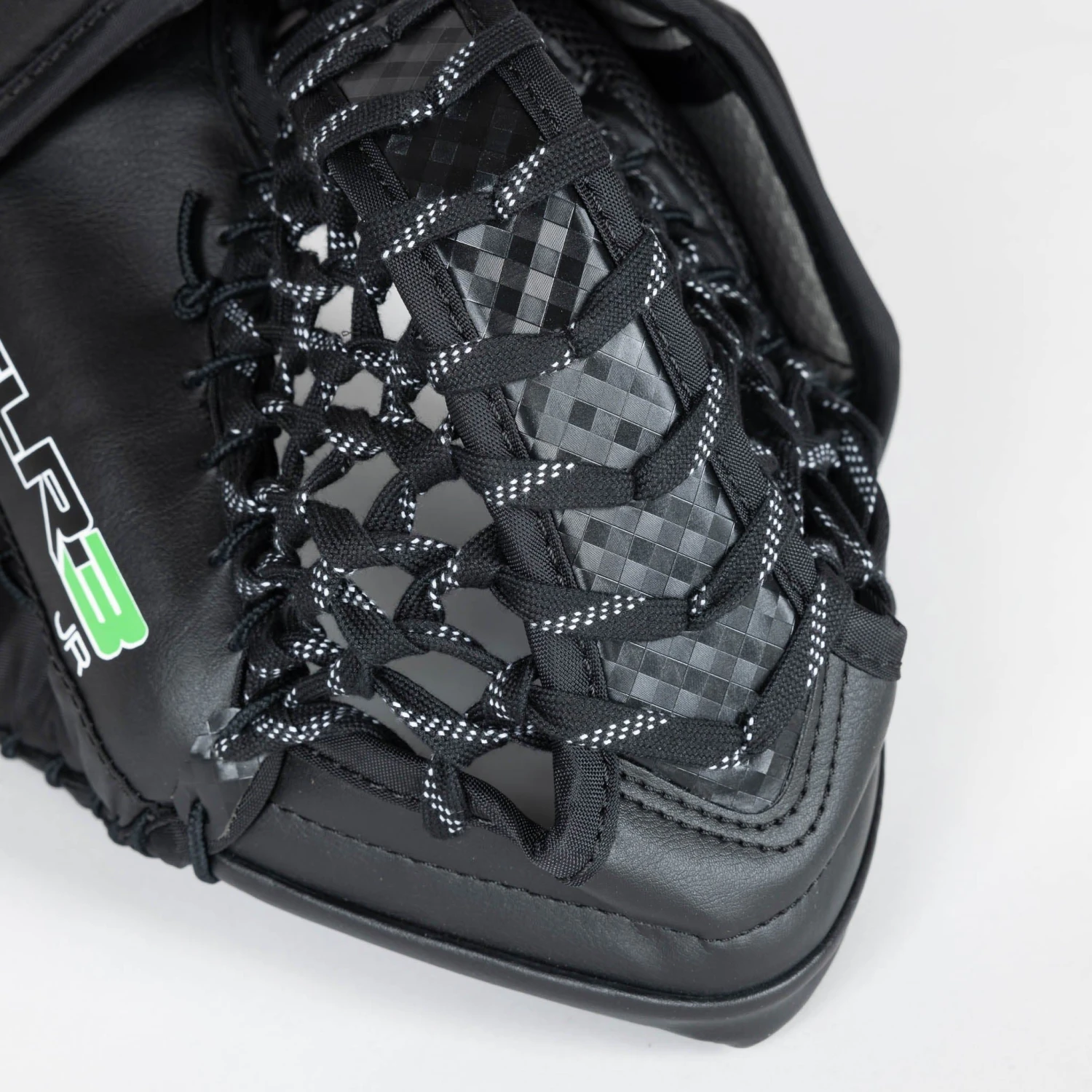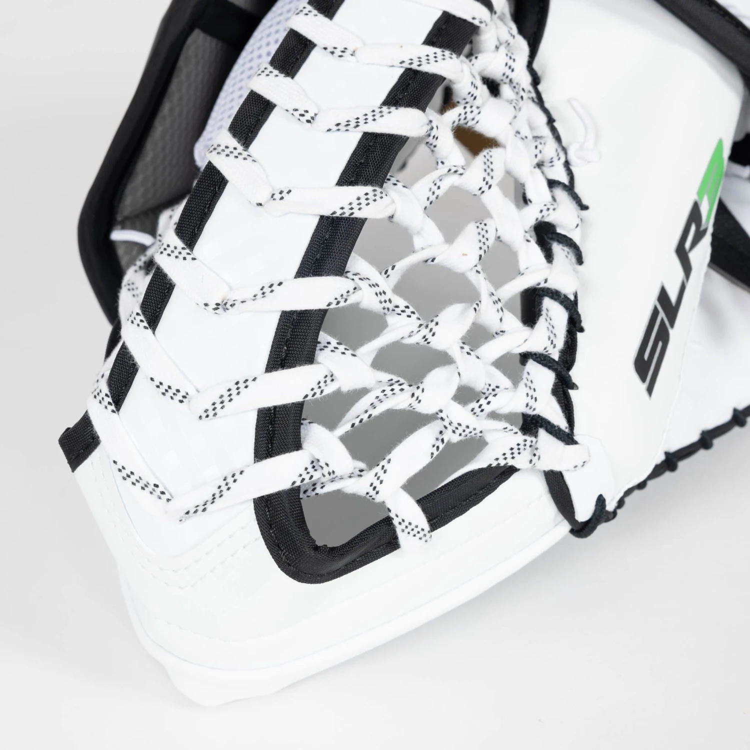 The pocket on the SLR3 Pro has been widened considerably to cover more space. The single-T design is extra deep to solidify catches and ensure the puck stays in the glove. The glove’s heat-moldable properties allow for a quicker break-in, so you can get on the ice with it sooner.