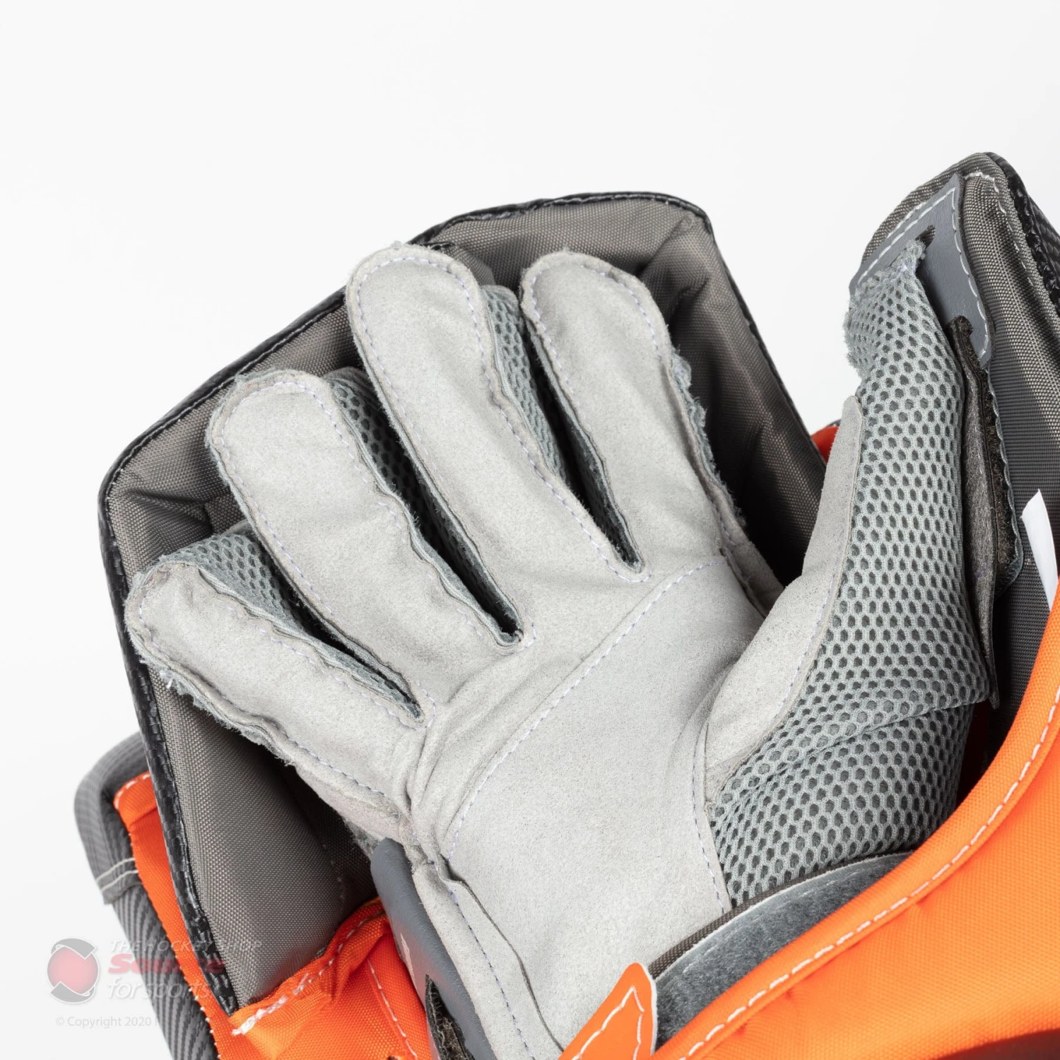 The side board of the blocker features ample finger protection, designed to fit the goal stick without any weak spots or interference.