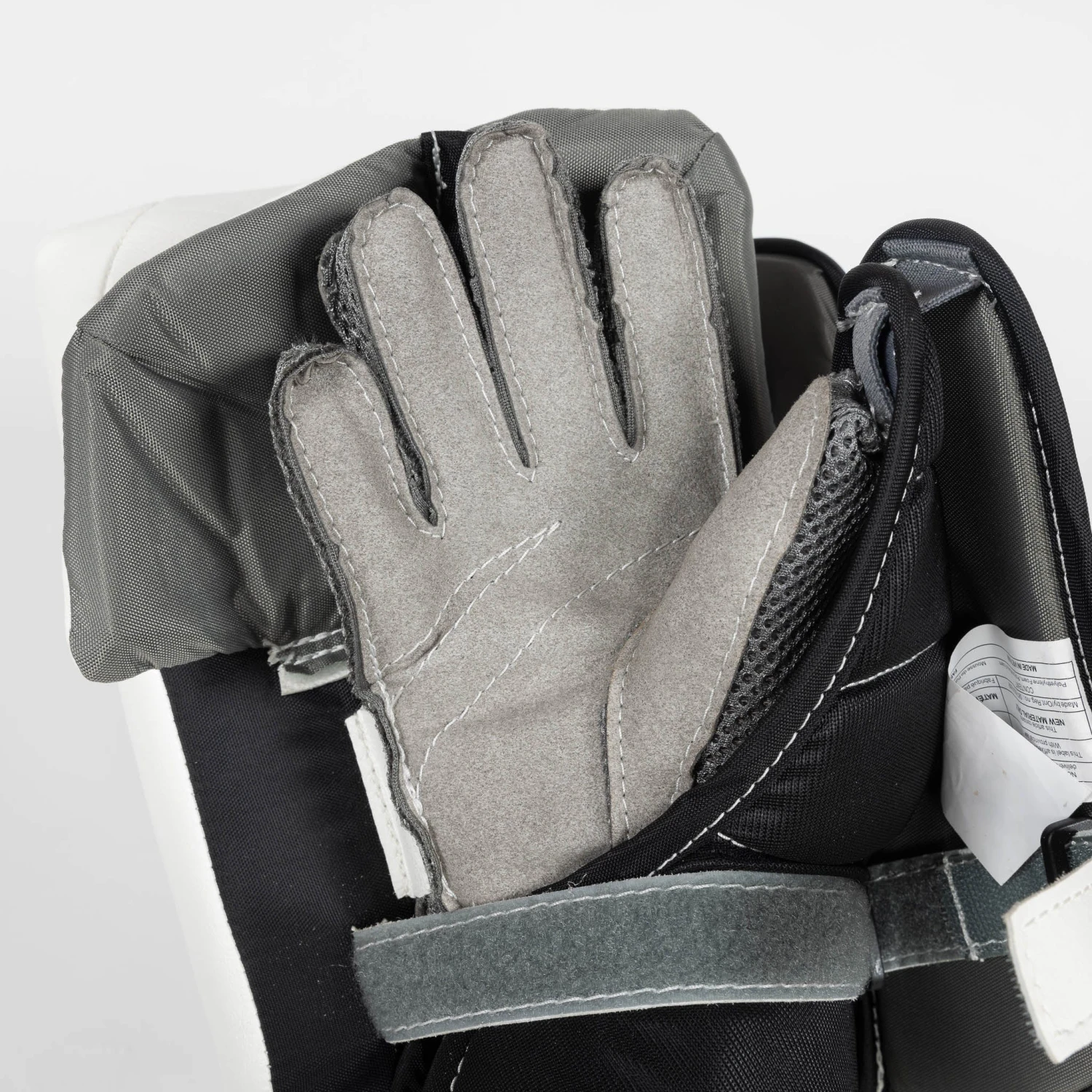The G6 blocker is built with a lightweight and comfortable construction that is perfect for developing goalies. This blocker includes a thick board and specializes in rebound speed.