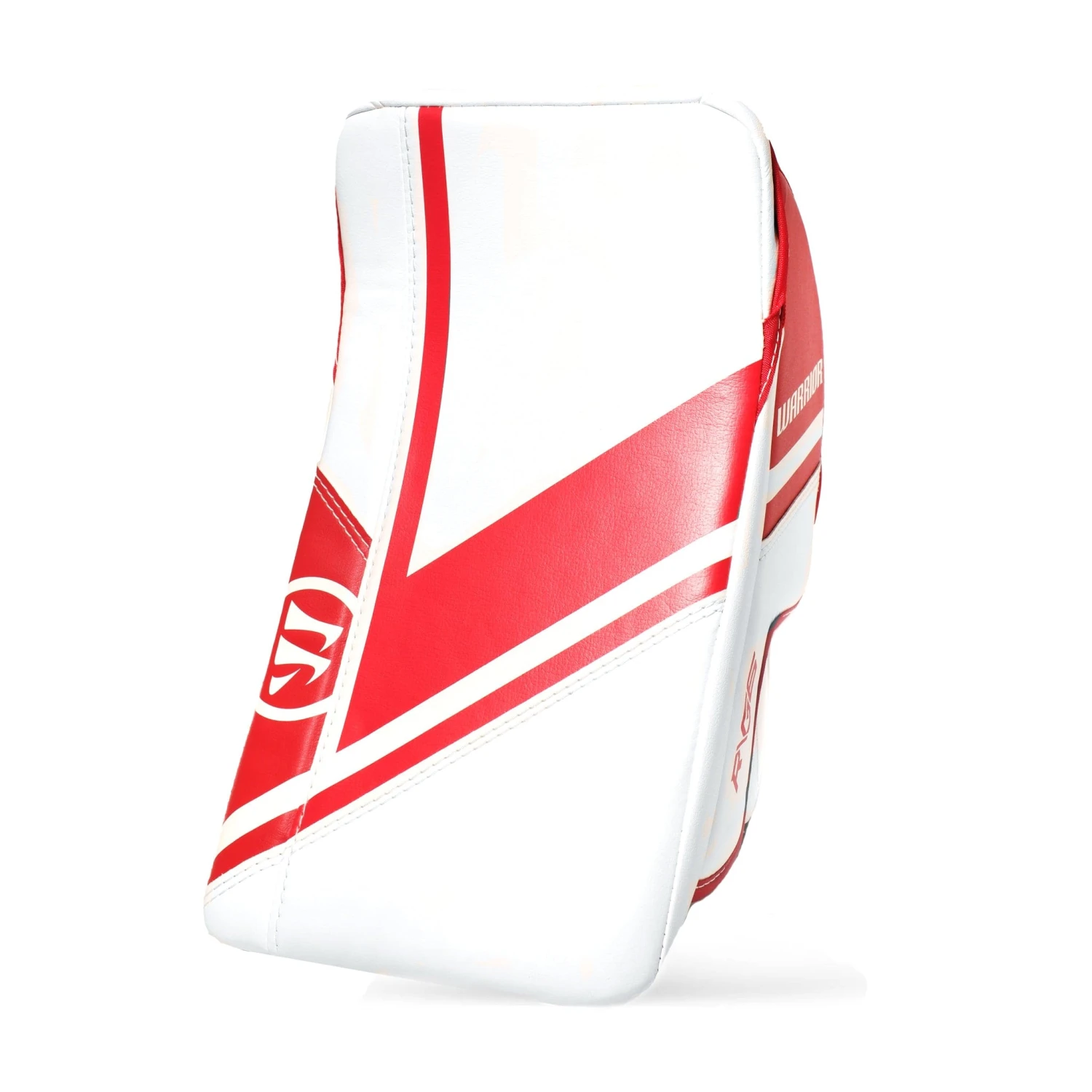 The Warrior Ritual G6 E+ Junior blocker comes in Regular and Full Right configurations in the following colourways: White/Black/Red, White, White/Black, White/Red, White/Royal, and Black.