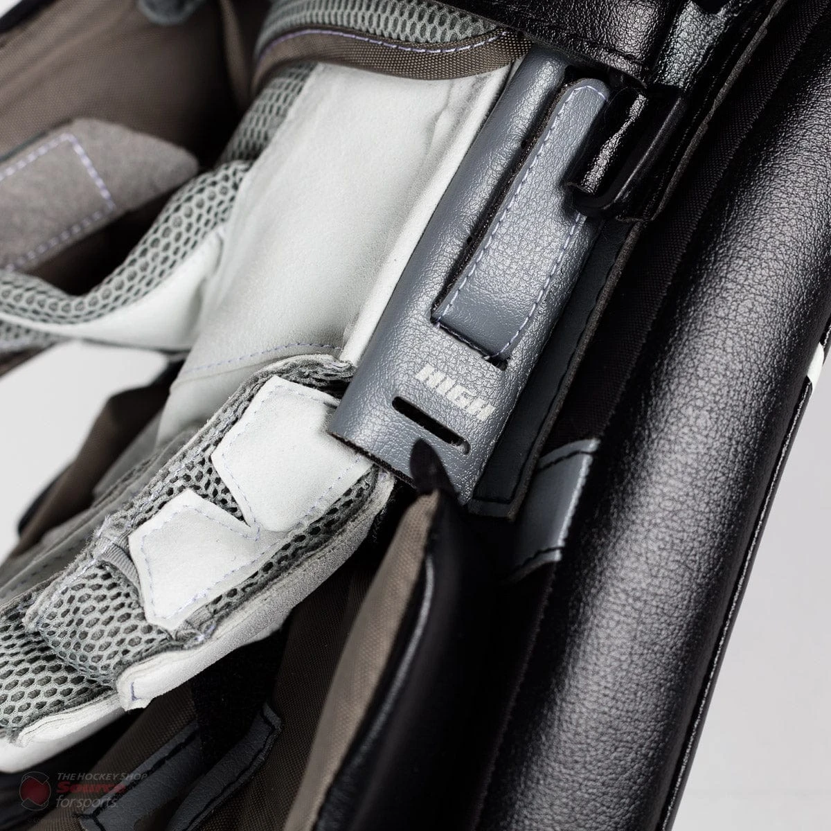 The side board of the blocker also features ample finger protection, designed to fit the goal stick without any weak spots but also no interference. The GT2 blocker has contoured finger protection to make sure your fingers are protected, no matter the shot. Using plastic molds and HD foam, you can be confident on any shot knowing you’re protected. The finger protection also has velcro adjustments to add customizability to how tightly your fingers are connect to the finger protection, giving the choice of mobility.
